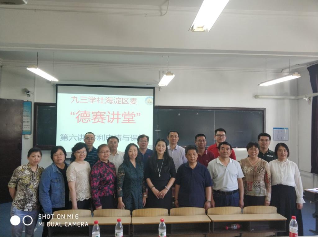 5月28日下午,由九三学社海淀区委主办、九三学社海淀区委妇委会协办、九三学社中国矿业大学(北京)支社承办的“德赛讲堂”第六讲——《专利申请与保护》在中国矿业大学(北京)学院路校区理化楼303教室成功举行。中国矿业大学(北京)党委统战部部长常维亚、九三学社海淀区委副主委兼秘书长赵国春、副主委刘艳青、宣传部长陶士振、社区委妇委会主任袁凤杰等50多人参加了本次活动。
