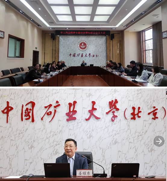 参会人员认真学习了习近平总书记在全国两会上关于教育的重要讲话精神和政府工作报告,认为习近平总书记两会上的重要讲话,为建设教育强国、科技强国、人才强国建设指明了前进方向,凝聚了人心、汇聚了力量,鼓舞了干劲,为新时期工作提供了根本指引、根本遵循。要充分发挥人才荟萃、智力密集、专业性强的优势,以更高的政治站位、更强的使命担当,牢固把握立德树人的根本任务,始终牢记“开发矿业、开采光明、建设祖国、造福人类”的使命,将个人所长与学校建设发展紧密结合,立足本职岗位,积极建言献策,勇于创新,努力在教育强国建设和推动学校"双一流"建设中展现新作为、作出新贡献。